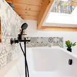 Esta villa dispone de un cuarto de baño con bañera, un inodoro separado y una ducha. Además, los huéspedes pueden disfrutar de la comodidad del secador de pelo, los albornoces y las toallas.